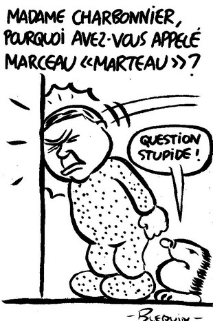 9h : Je suis de plus en plus à l’aise, je me permets même de faire dessins réagissant « à chaud » aux écarts de langage de certains orateurs : quand Julie Charbonnier appelle par erreur « Marteau » son petit patient qui s’appelle en réalité Marceau, je ne la rate pas et je fais une corrélation avec les coups de tête que ce pauvre garçon donnait, dit-elle, dans un mur… Venant de moi à qui on a pourri la vie avec la notion de « lapsus révélateur », c’est gonflé, j’en conviens ! Mais je peux me permettre d’être un peu de mauvaise foi. Ma situation dans ces JA me rappelle un peu celle de Statler et Waldorf, les deux petits vieux sarcastiques du Muppet Show ! À cette différence près, bien sûr, que moi, au moins, je suis content d’être là !