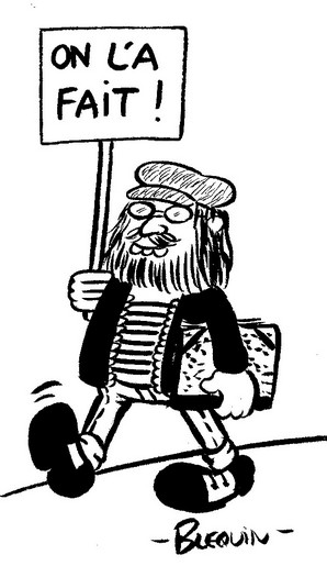 12h40 : Pause déjeuner. Cette fois, je me suis trompé dans le choix de la table, je n’y reconnais pas grand-monde. Mais la gêne que cela véhicule est vite surmontée : les congressistes commencent à savoir qui je suis et sont ravis et fiers de m’avoir avec eux. Certains me comparent à Cabu, ce qui me flatte au plus haut point !