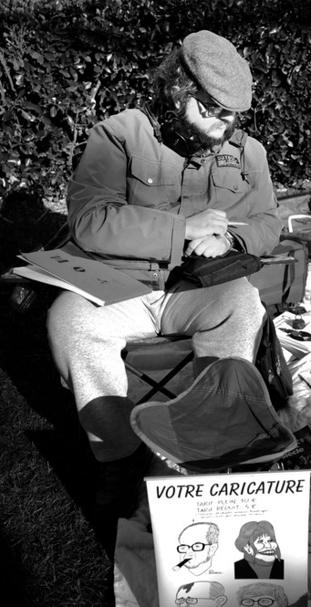 17h30 : Cette seconde journée de foire a été globalement moins fructueuse que la précédente : il faudra que je me souvienne, à l’avenir, que les gens sortent plus volontiers le samedi que le dimanche… Les caricatures ont bien rapporté dans l’ensemble ; je garde cependant en travers de la gorge le souvenir de ce jeune homme trop bien coiffé à mon goût qui était tenté de faire appel à mon talent… Mais qui n’avait qu’un billet de cinquante euros sur lui ! Je n’avais évidemment pas la monnaie sur une somme pareille… J’ai trouvé son attitude indécente, surtout vis-à-vis de mon amie Louve Furieuse qui avait un stand juste en face de moi et qui traverse actuellement une période des plus noires sur le plan financier… Bref, j’ai eu l’impression de rencontrer Louis Sarkozy ! Il me reste aussi quelques vieux livres à vendre : si je ne parviens pas à les placer avant la fin de l’année, je les donnerai aux bonnes œuvres ! Je n’arrive pas non plus à me débarrasser d’une tablette graphique dont je ne me suis jamais servi. Maintenant au moins, je sais pourquoi : d’après ce que m’a dit un père de famille, ce genre d’appareil est déjà obsolète par rapport à ce qui existe aujourd’hui sur le marché pour dessiner sur des supports numériques… Je suis décidément largué par l’évolution de la technique ! Autant en rester au papier : au moins, la manière de l’utiliser ne change pas d’une année sur l’autre !