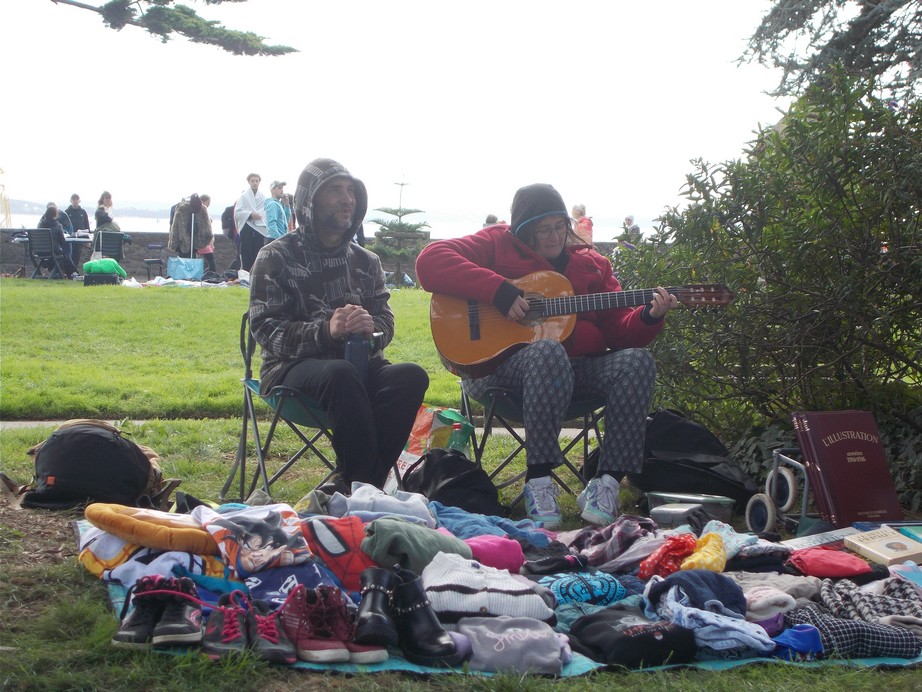 15h15 : Ayant un quart d’heure de battement avant d’aller rendre visite à un copain qui vit à Saint-Martin, je marque une pause sur la place Guérin : même à l’ombre, je crève de chaud ! Une telle température à la veille du mois d’octobre à Brest… Et Donald le connard ose aboyer que le réchauffement climatique est une fumisterie ! Et il y a des gens qui l’écoutent comme le Messie, même hors de son pays…
